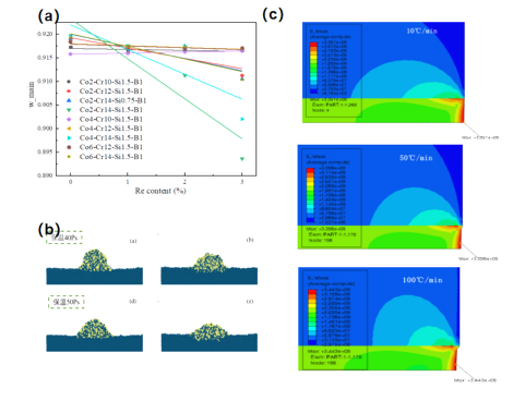图1 修复焊料成分设计及仿真模拟:(a)高通量计算分析;(b)分子动力学润湿性模拟;(c)焊接过程温度场模拟